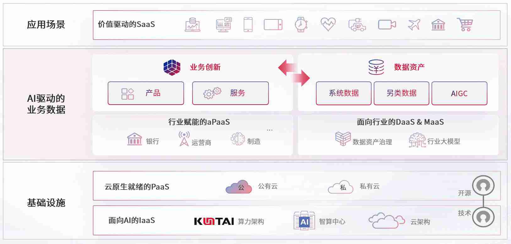 数字时代,,围绕企业数字化转型的关键要素,,,,尊龙集团数码开创性的提出数云融合战略和技术体系框架,,着力在云原生、、数字原生、、、AI原生和信创产业上架构产品和服务能力,,,为处在不同数字化转型阶段的快消零售、、、汽车、、、金融、、医疗、、、政企、、、、教育、、运营商等行业客户提供泛在的敏捷IT能力和融合的数据驱动能力,,,,构建跨界融合创新的数字业务场景和新业务模式,,,,助力企业级客户建立面向未来的核心能力和竞争优势,,,全面推动社会的数字化、、智能化转型升级。。